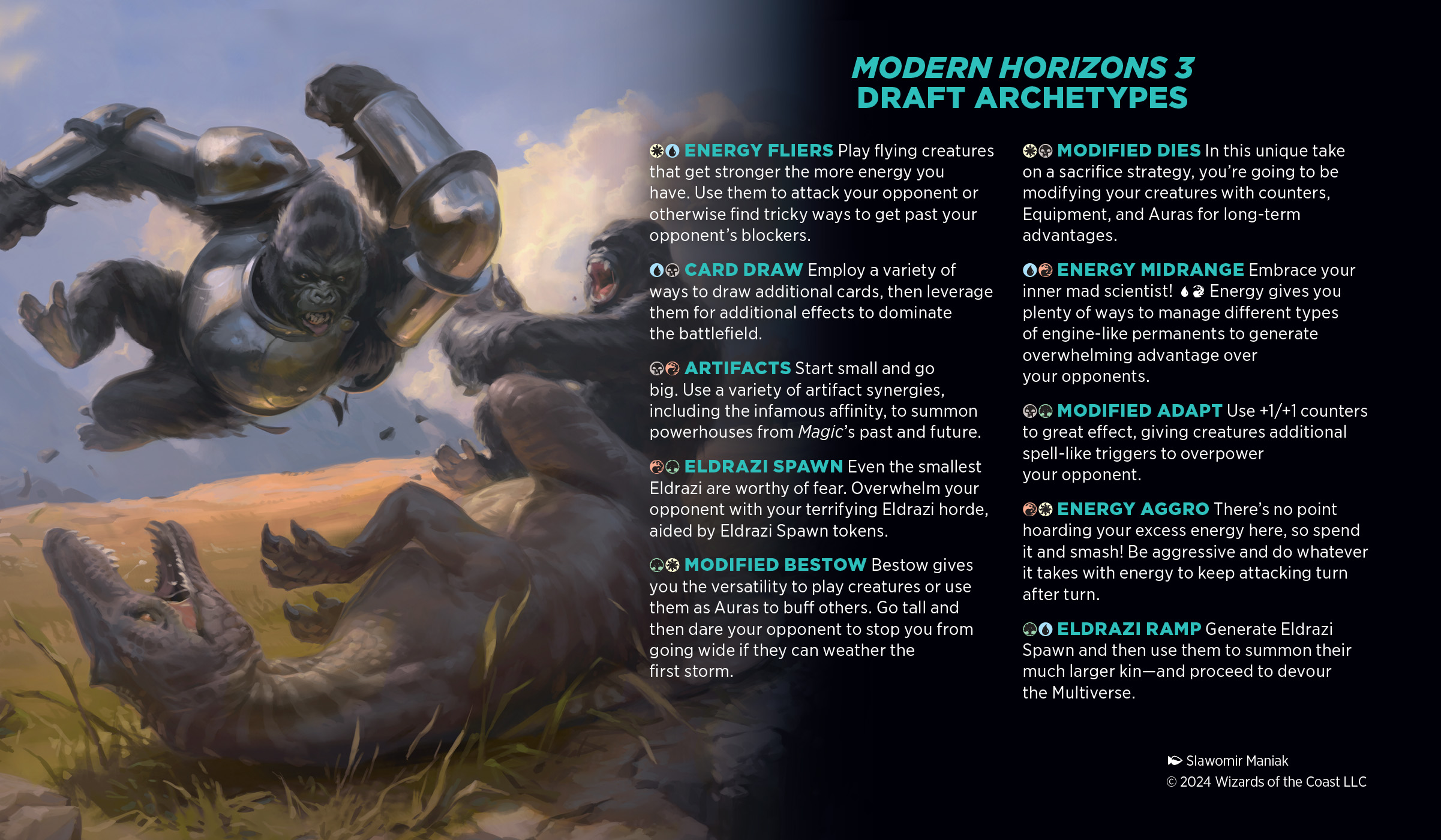 Source: Gavin Verhey (June 3, 2024). "Modern Horizons 3 Prerelease Primer". magicthegathering.com. Wizards of the Coast.