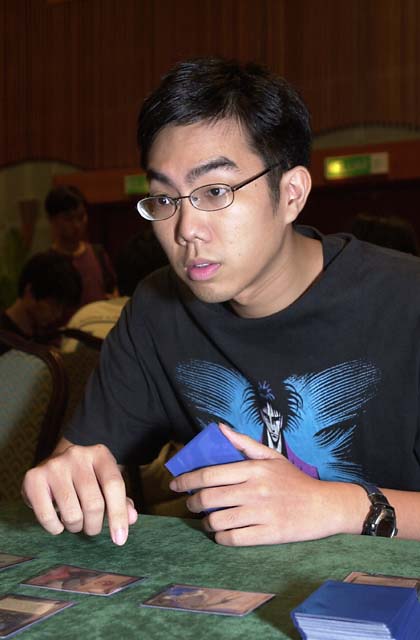 Sam Lau during a Round 4 feature match against Koichiro Maki at the 2001 APAC Championships. Photo from official Sideboard.com coverage.[1]