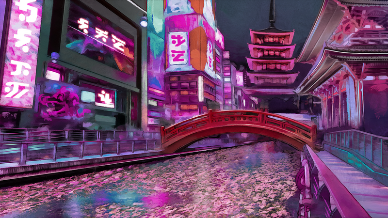 A canal in the Towashi Undercity in Kamigawa: A Visual Novel.
