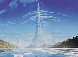 It's so tall that it transcends mere "Mountain"-ness so that its mana can only be used for the most powerful and legendary creatures.[2] The bleak white spire of Untaidake Peak rose like the polished bones of some fallen giant.[3]