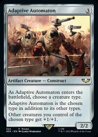 There are no current plans to make in-universe Magic versions of the new cards in the Warhammer 40K Commander decks, but R&D has the capability to do it if needed on a card-by-card basis.[8]